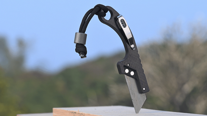 This gear means serious business, whether used indoors or outdoors. It boasts carbon fiber for the handle and blade sheath. The Magna Sheath offers snappy blade action and gives a satisfying click with every sheath.