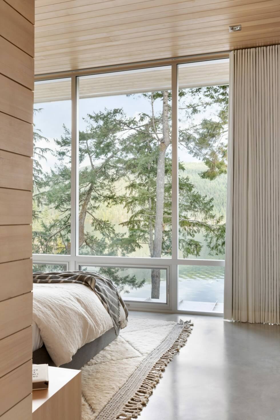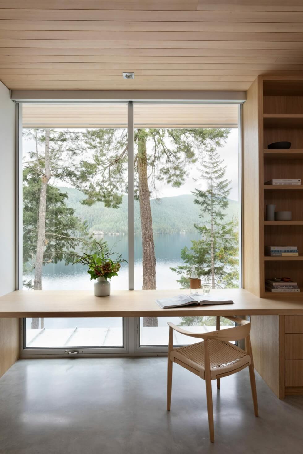 The promontory where the holiday residence is situated looks secluded with verdant trees that line its perimeter. Moreover, as the name tells us, it likewise promises a majestic view of the Sakinaw Lake. Details show that this project spans 3,060 square feet and is designed for a family of five.