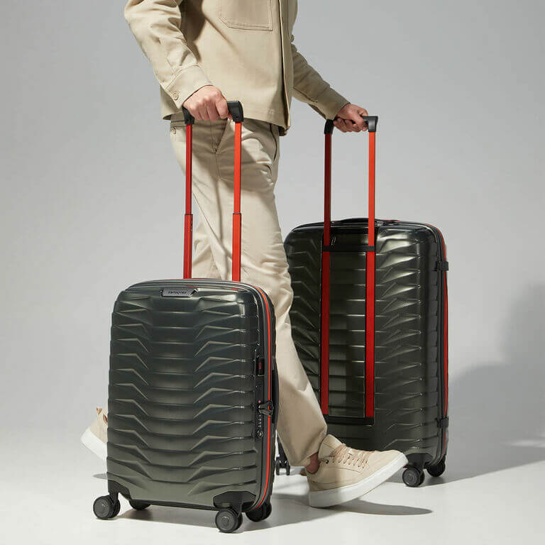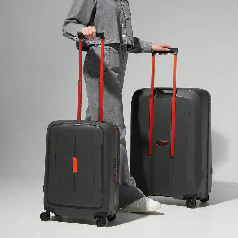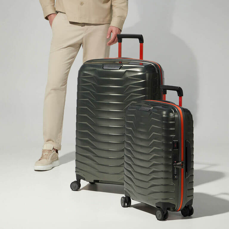 Both the Proxis and Essens arrive in a Green/Orange colorway and stand on four wheels. The latter promises smooth movement to minimize effort during transport. Pick the smaller form factor — at roughly 22 inches — for carry-on convenience, while the larger versions at approximately 30 inches need to be checked in.