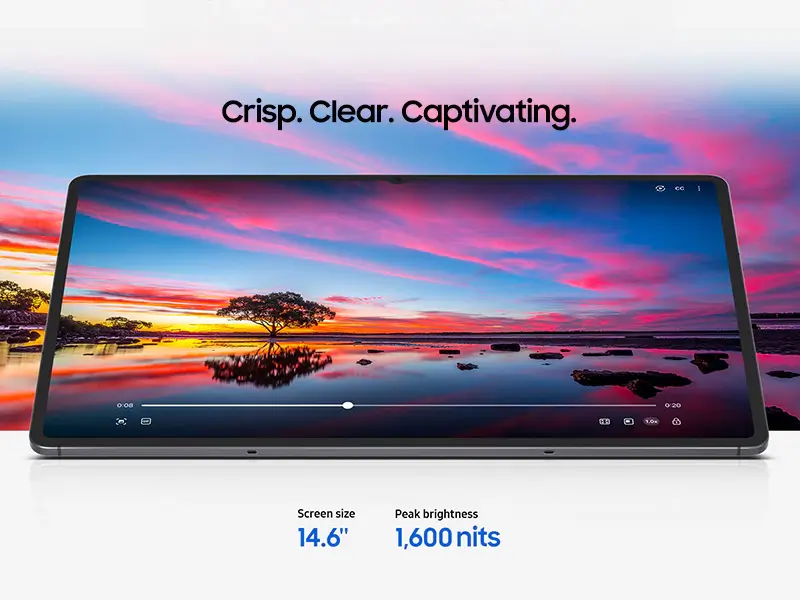 For comparison, its predecessor — the Galaxy Tab S10 Ultra — touts a depth of 5.4 mm. What probably makes this feat of engineering possible is the tablet’s use of a Mediatek Dimensity 9400+ (3 nm). You are still getting a massive 14.6″ Dynamic OLED 2X panel with a 120 Hz refresh rate and HDR10+ support.