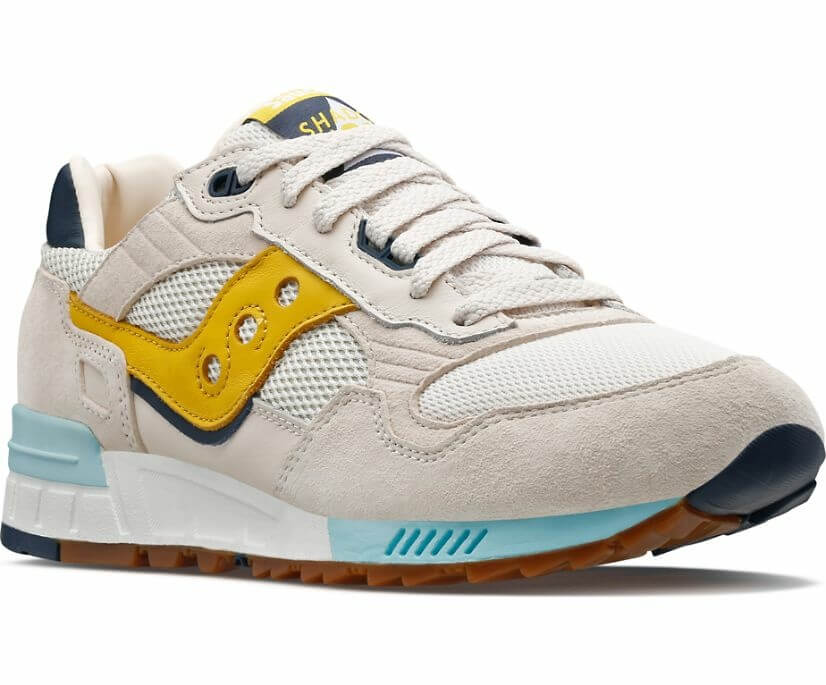 Saucony branding also appears on the sockliner alongside the logo. Take each stride with confidence as the EVA midsole absorbs impacts and generates exceptional energy return. Traction is never an issue as well as the XT-600 triangular lugs of its rubber outsole offer a reliable grip. The Shadow 5000 Premium is available now and in three colorways: Beige/Blue, Blue, and White/Yellow.