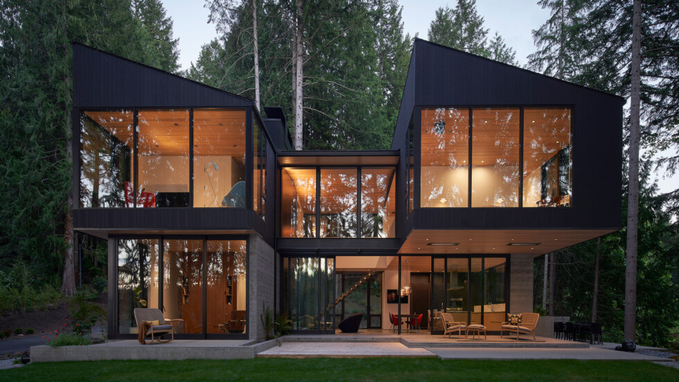 This family home occupies almost 3900 square meters and is owned by the CCO of the video game Minecraft. As such, architect Ryan Stephenson, of Stephenson Design Collective, drew inspiration from the game’s usage of blocks for its structure. He translated these rough blocks into board-formed concrete on the ground floor with an exterior that beautifully merges with the surrounding forest to render not just an elegant structure but also one that evokes a sense of “play.”