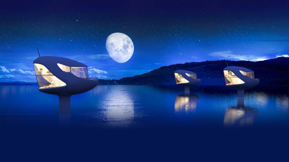 These can become private residences or luxury accommodations for hotel operators close to the coastline. People can access the SeaPod via water taxi or their personal watercraft. It measures 35 x 26.9 x 23 feet and features three levels. You get about 833 square feet of living space to customize and should be enough for up to two people.