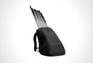 The Grasshopper golf backpack features a water-resistant ballistic nylon exterior and a retractable stand.