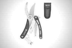 The Bibury 5-1 Gardening Tool is a lightweight gear made with aluminum alloy that comes with pruning shears, knife, saw, hook, and a bark shovel.
