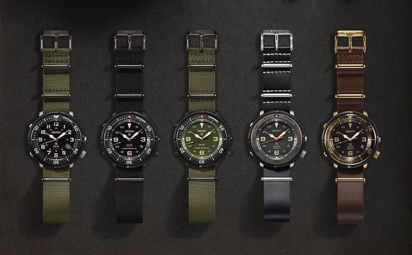 One of Japan’s largest design and consulting firms, Lowercase, has just collaborated with Seiko on a line of military-style limited edition Seiko Prospex Fieldmaster Lowercase Watches ($340+). The new eight watches are all powered by the proprietary Seiko Caliber V157 solar quartz movement, all boasting 44mm black stainless steel cases with a water resistance down to 650 feet (200 m). The faces all have cathedral hands and large hour markers with some of them featuring a 24-hour dial indices as well.