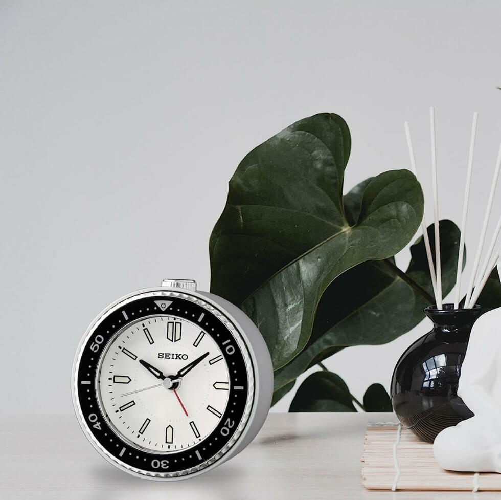 The Seiko Mai Bedroom Alarm Clock is inspired by the iconic aesthetic of the company’s dive watches. It’s a collector’s item that looks great on any nightstand and functions well too.