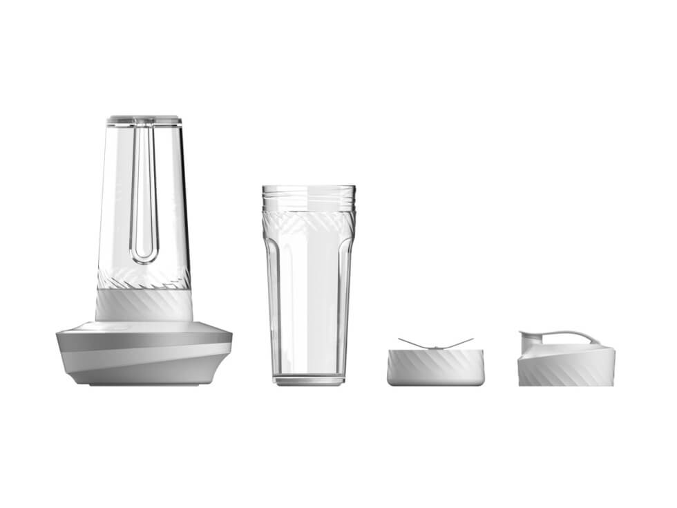 Fuse packs a high-torque blender that can easily crush frozen ingredients yet operates quietly, making it perfect for early morning use. A tactile button powers the machine on or off, while an indented curved touch interface holds the swipe controls with LED indicators. Users swipe across to choose the desired speed or tap preset icons for intuitive control.