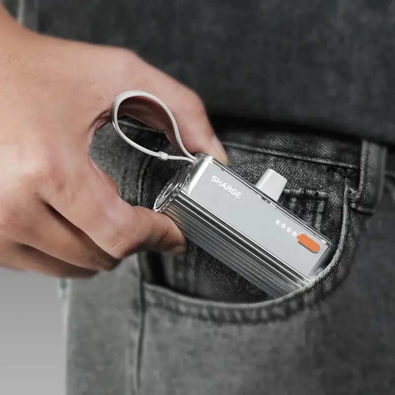 Power banks are indeed useful, but they have a reputation to be bulky: the higher the battery capacity, the larger and heavier. They end up hiding in your bag as they can be too cumbersome for the pocket and unsightly to show off. The Flow Mini from Sharge (formerly Shargeek), is anything but.