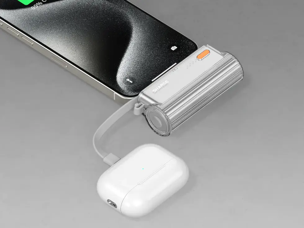 Conveniently, the Sharge Flow Mini offers the option to switch between USB-C connector and Lighting cable variants. Users can detach the primary port and swap the USB-C or Lighting variants. Meanwhile, a lanyard loop cable on the side doubles as another charging cable so you can charge two devices at the same time or use it to refuel the power bank itself to a power outlet.