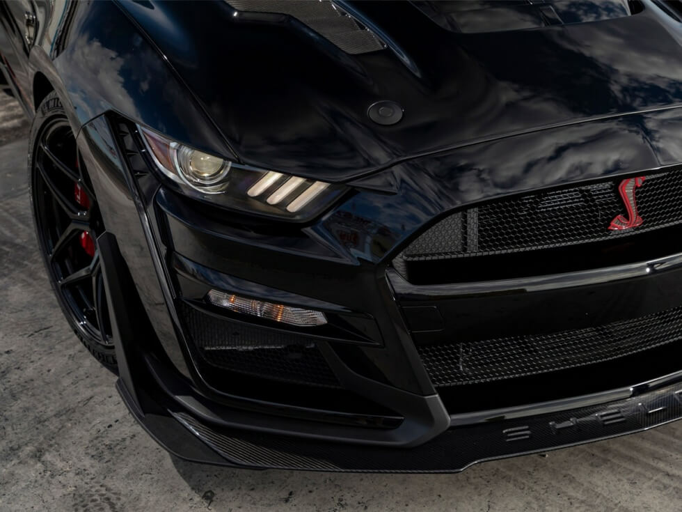 With its muscular stance and aggressive aerodynamic outline, this already comes off as one menacing machine. This modified Mustang is packing a 5.2-liter V8. With the aid of premium intercooled twin turbos, a custom fuel system, a new ECU, and more, the GT500 CODE RED is primed for performance.