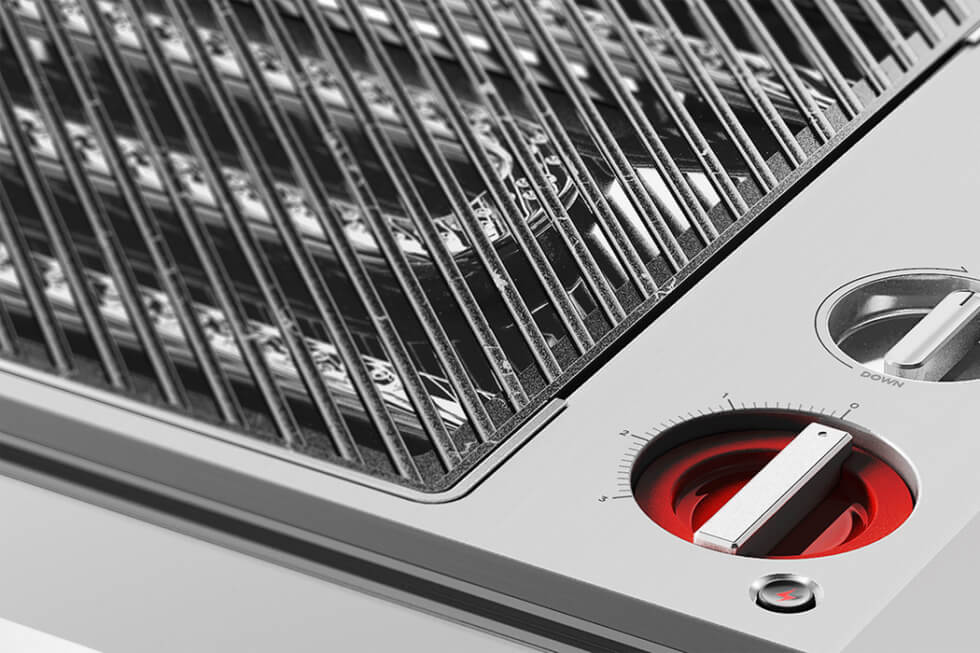 The bottom holds a battery compartment for its piezoelectric ignition system, a receptacle for the gas canister, and a detachable drip pan. The grill grates are removable to access the burners below for maintenance. Given our love for outdoor barbecues, the Shelf presents a clever and stylish product people would want to have handy.