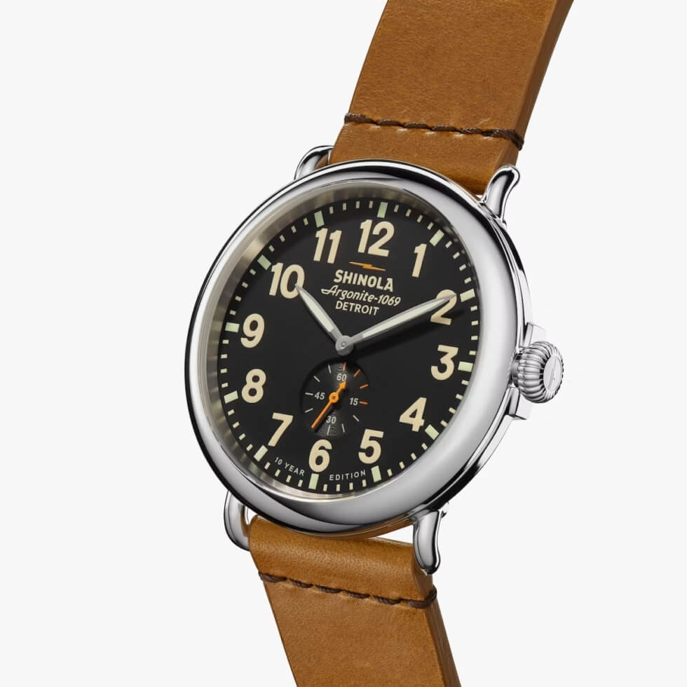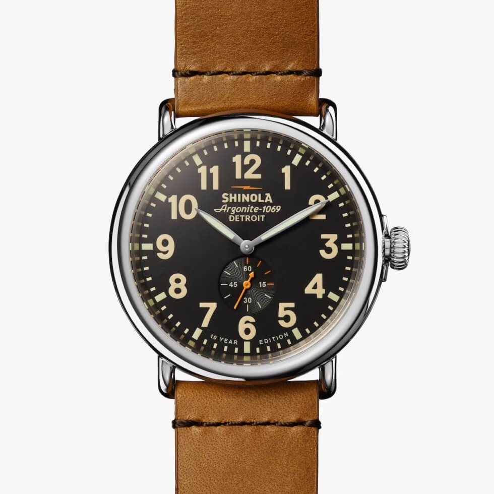 When you want to take a break from Swiss-made timekeeping instruments and slap on something built stateside, which brand would you shop for? There are plenty of outstanding watchmakers to pick from, but if you want a timepiece with a vintage vibe and perhaps some automotive elements, Shinola’s lineup has plenty. The 10-Year Limited Edition Runwell is a classy and understated silhouette available in two sizes.