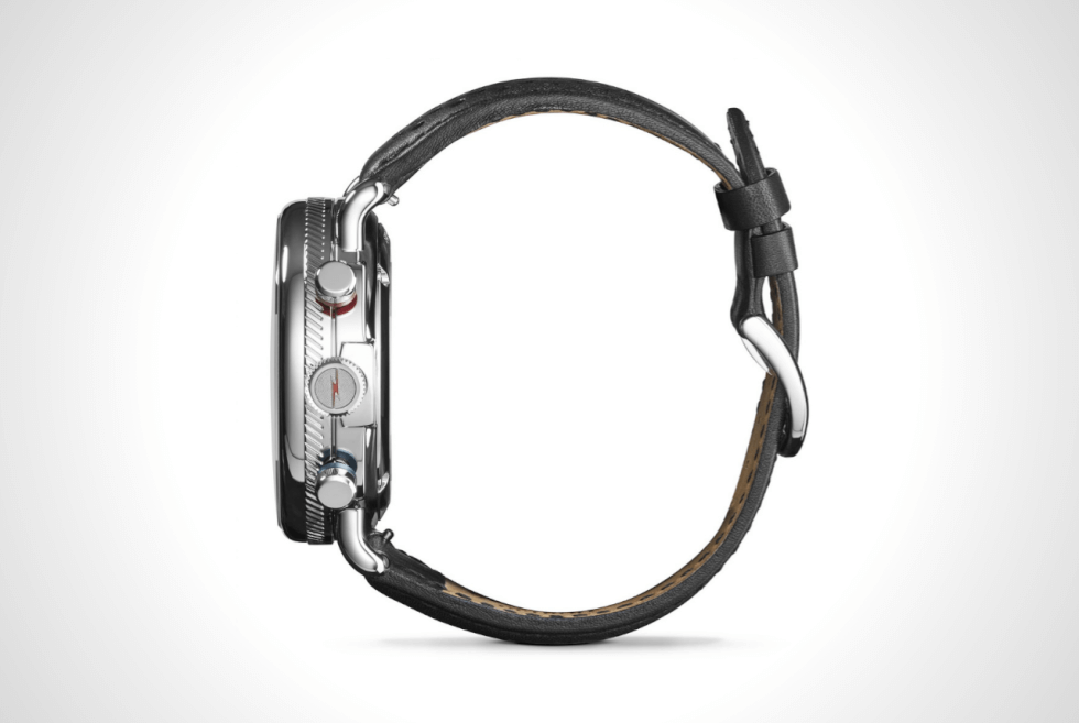 An exception here is the 3 o’clock and 9 o’clock markers replaced by the sub-dials instead. Other elements that easy to miss are the Shinola logo on the crown and red/blue bands on the pushers. Finally, the Canfield Speedway comes with a black Italian leather rally strap with a quick-release system and a pin buckle.