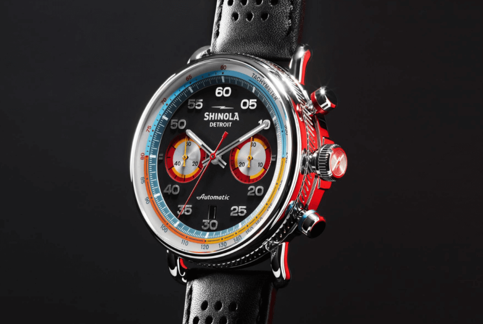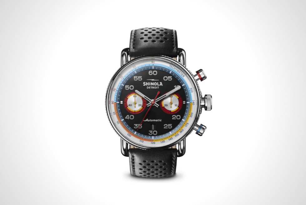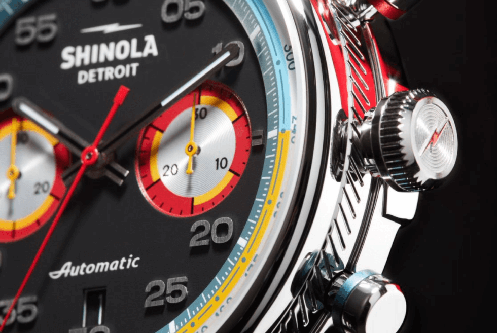 However, these tones are not loud enough to distract you from the impressive profile of the wristwatch. It is a tribute to the “vibrant, expressive paint jobs of stock cars,” says Shinola. The release of the Canfield Speedway likewise earns the distinction of being the first automatic chronograph from Shinola.