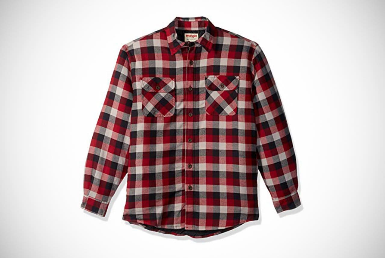 4) Wrangler Authentics Sherpa Lined Flannel Shirt Jacket