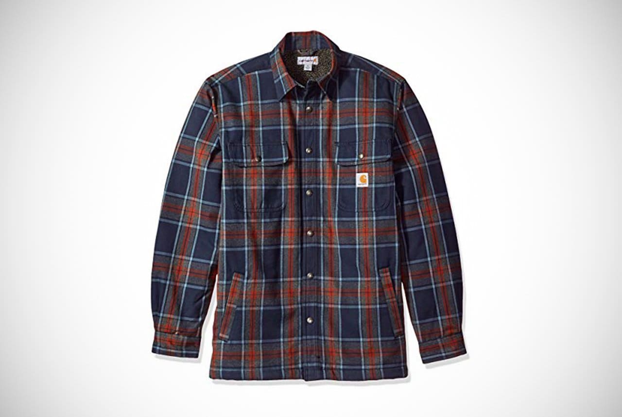 Next on our list of top 20 shirt jackets for men is another Carhartt piece of eyebrow-raising craftsmanship. The Hubbard Sherpa Lined Shirt Jacket is one of the simplest designs on our list. It also looks more like a shirt than what competitors might like.