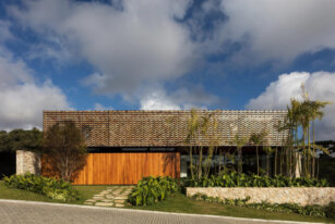 Marcos Bertoldi Arquitetos designs the Casa Thomé Beira da Silva with wooden elements for an inviting and warm atmosphere.