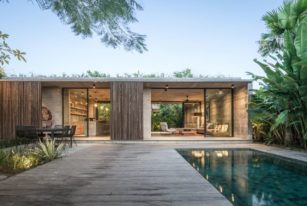 The Caceres + Tous House BK is a concrete house that boasts spacious private and public spaces connected by lush gardens.