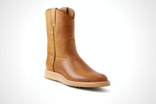 Rhodes Footwear Roper Boot Caliber comes with waxed cowhide uppers, a Goodyear Welt construction, pigskin lining, and polyurethane outsole.