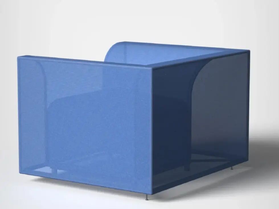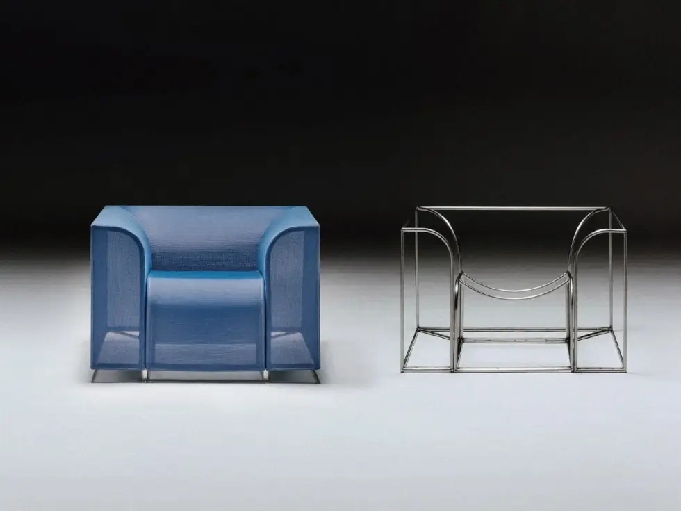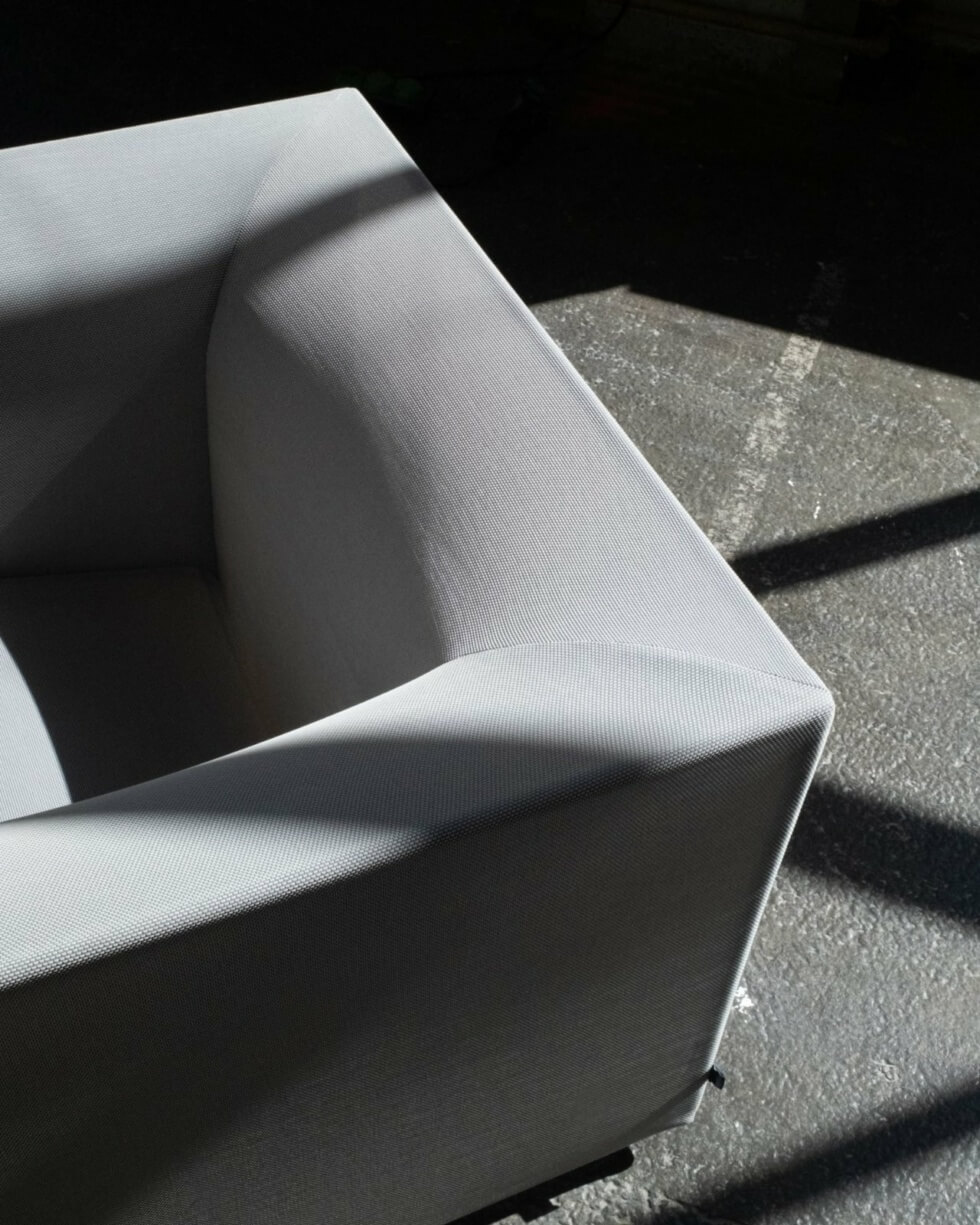 Moreover, the translucent quality of the fabric reveals the structural integrity of the SHRINX Easy Chair: low-slung and sculptural. It creates lightness and translucency, making it a less bulky choice for seating in public or private spaces.