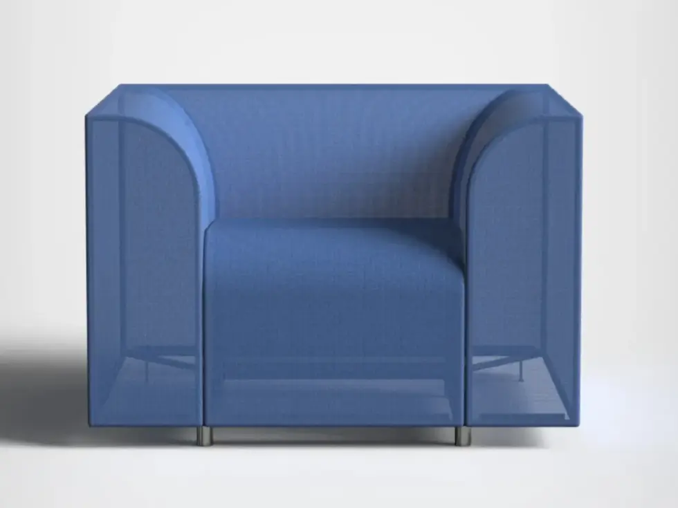 This product from Danish furniture brand +Halle and designer Boris Berlin challenges the conventional method of creating a soft seating by omitting PU foam completely. Instead, it used the innovative SHRINX 4903 fabric from Krall+Roth. It’s a semi-translucent mesh textile with self-supporting properties made from 68 % polyester and 32 % polyamide.