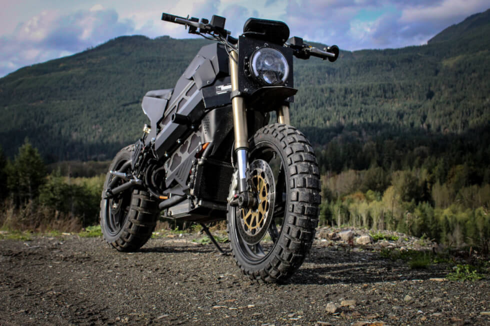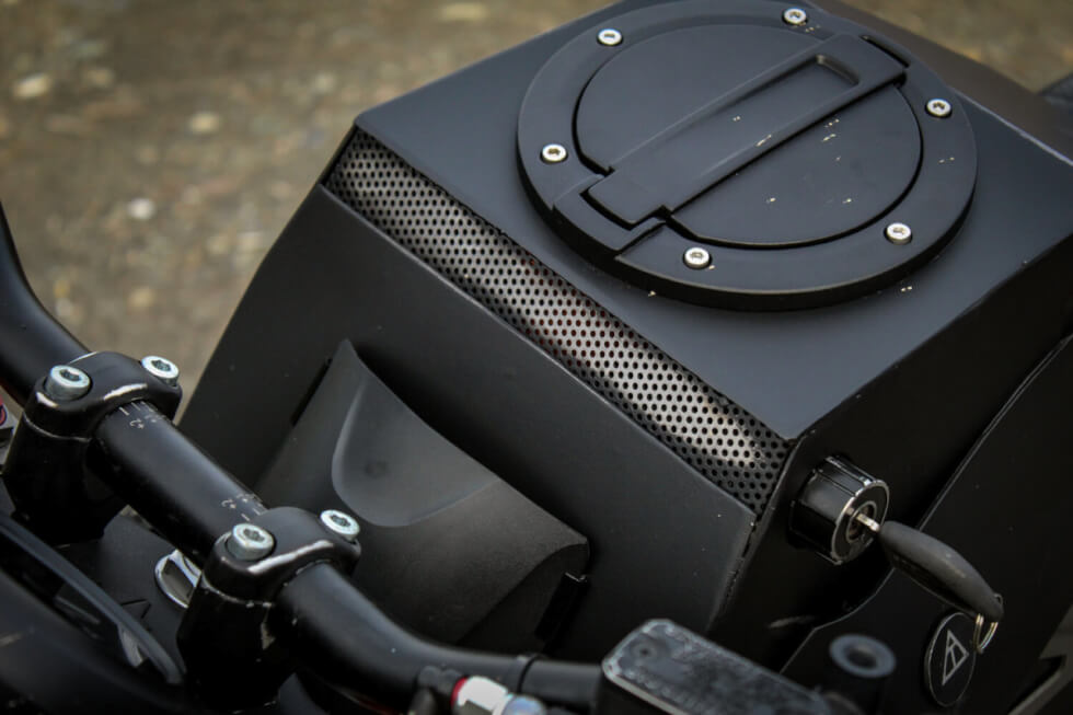 You’ll find here Droog’s signature angular styling on full display, complete with a faux tank and exposed battery mounts, giving the bike a gorgeous industrial look. Not only that, the bike’s sharp edges and classy finish give it extra visual oomph, a mix of utilitarian and badass.