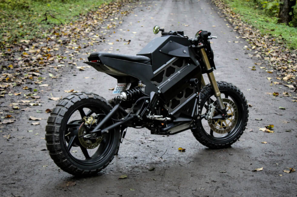 Droog Moto has done it again. The Silent Assassin E-Scramble, its latest build, is its quietest ever. Made for a client, the ride features a Brammo Empulse R base. That means it has a power of 40 kW, with a water-cooled permanent magnet AC motor. Interestingly, the battery drives a six-speed transmission.