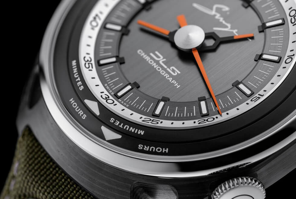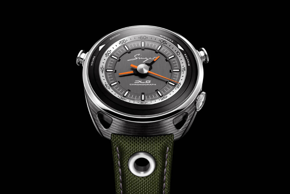If you look closely, Singer Reimagined uses the outer rings to tell the hour and minutes. As for the central three hands, these are for the chronograph. The Track1 DLS Edition runs on a Singer 6361 AgenGraphe self-winding movement with a 60-hour power reserve.