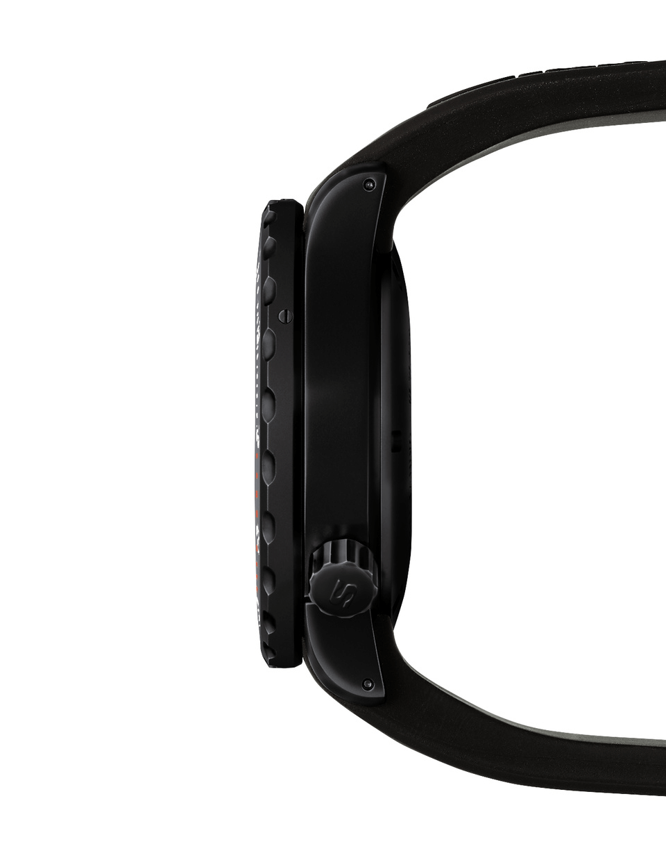 Sinn delivers remarkable craftsmanship with the U1 DE which owners will appreciate for years to come. Powering the wristwatch is the label’s SW 200-1 self-winding movement with a 38-hour power reserve. Personally, we would swap out the rubber watchband for a metal bracelet in black to match its durability.