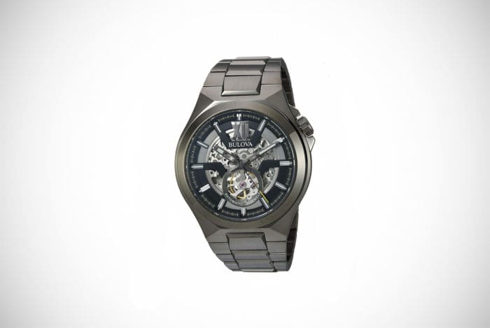 We promised you more Bulova watches and here is the first. This skeleton watch for men is a gunmetal beast and suits the unearthed watchmaking details that sit in the center of the dial. The case and the strap are made from the same IP stainless steel. This gives it an even and rounded aesthetic that resembles many of the world’s best watches.