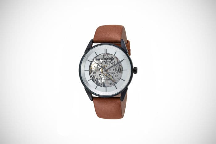 As quite a contrast to the metallic watch we have just seen, the Kenneth Cole watch is made with earthy and rustic colors. This skeleton watch is equipped with a strap made from genuine leather to enhance your comfort and your style at the same time. The case diameter may be slightly smaller, but it’s made with durable stainless steel you can count on.