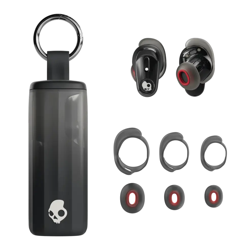 Depending on the scenario, toggle the Stay-Aware Mode for safety. For extra utility, the charging case features a sliding mechanism and an O-ring carabiner to seamlessly clip onto whatever is convenient. Since no two ears share the same anatomy, Skullcandy includes three ear gels and three fit fins for custom ergonomics.