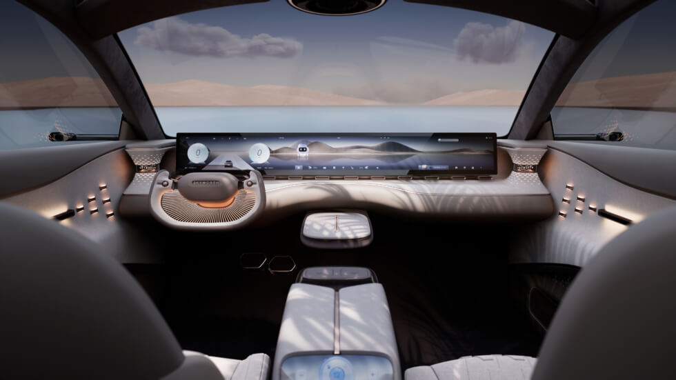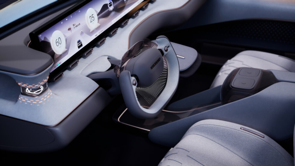 This means the SKYHOME flaunts suicide rear passenger doors. Inside the classy interior, those in front are greeted by a digital display that runs the width of the dashboard. Instead of a traditional steering wheel form factor, it uses a futuristic yoke with additional controls mounted close to the driver’s thumbs.