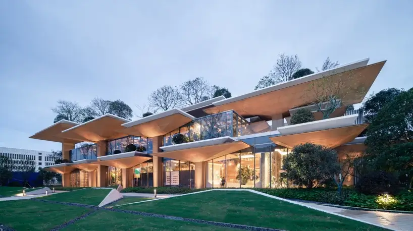 A couple of kilometers from the Songya Lake National Wetland Park in Changsha, Hunan, China lies the Slab Hill Lifestyle Lab by Line + Studio. It catches the eye even from a distance because of its unique architectural design.