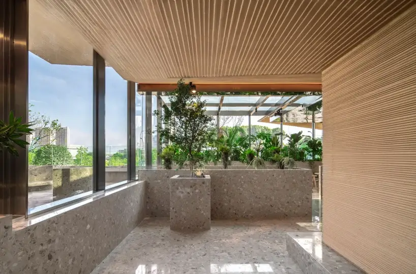The Slab Hill Lifestyle Lab also features glazed volumes that connect the indoor to the outdoor setting. Indoor plants also adorn the interior spaces and they act as extensions of the exterior landscape. Its name also references the artificial “slab hill” fitted into the terrain for a more suburban setting.