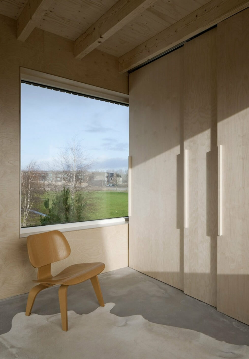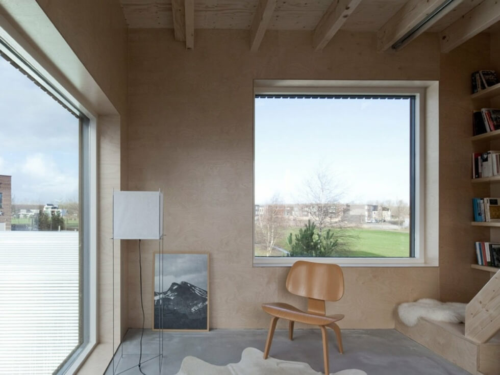 A sliding glass door opens to the kitchen and dining area in the first floor, then the middle floor houses the living room that looks out to Homerus Park, and the top floor hosts the bedroom and bathroom. Despite the compact area, the house gives off a feeling of “luxurious spaciousness” thanks to full height ceilings, large windows, and open plan rooms that run the width of the building.