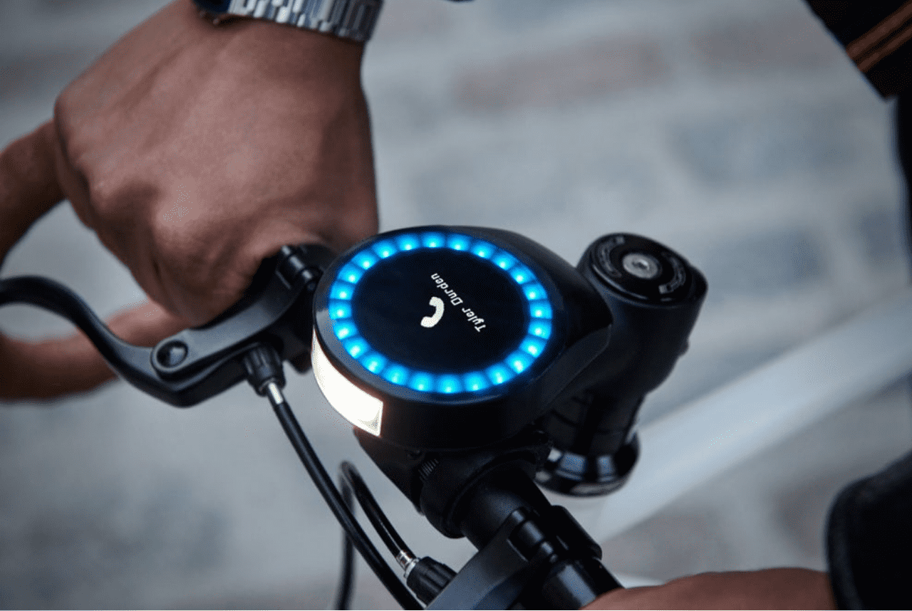 The device retains a circular, minimal design much like its predecessor. It mounts in the center of the handlebars and displays a ring of colored lights to provide turn-by-turn signals. These signals guide the rider toward their destination. The most significant addition is a 1.5-inch OLED display at the center, which displaying all kinds of info. You could read your speed in real time, or glance at fitness metrics like distance, time, and calories burned. It also displays notifications from a number of apps, including WhatsApp, Messenger, or even Slack.