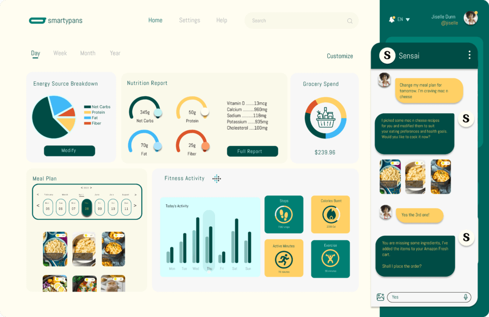 It automatically records and shares recipes as you cook and offers a comprehensive nutrition profile on the Smartypans Health Dashboard. These include net carbs, protein, fat, fiber, vitamins, sodium, calcium, and more.