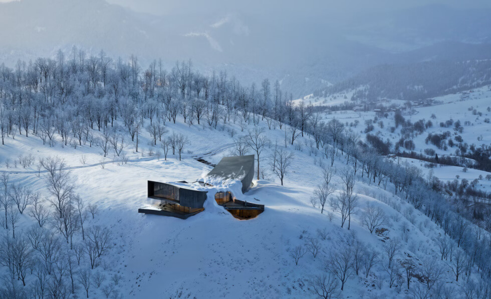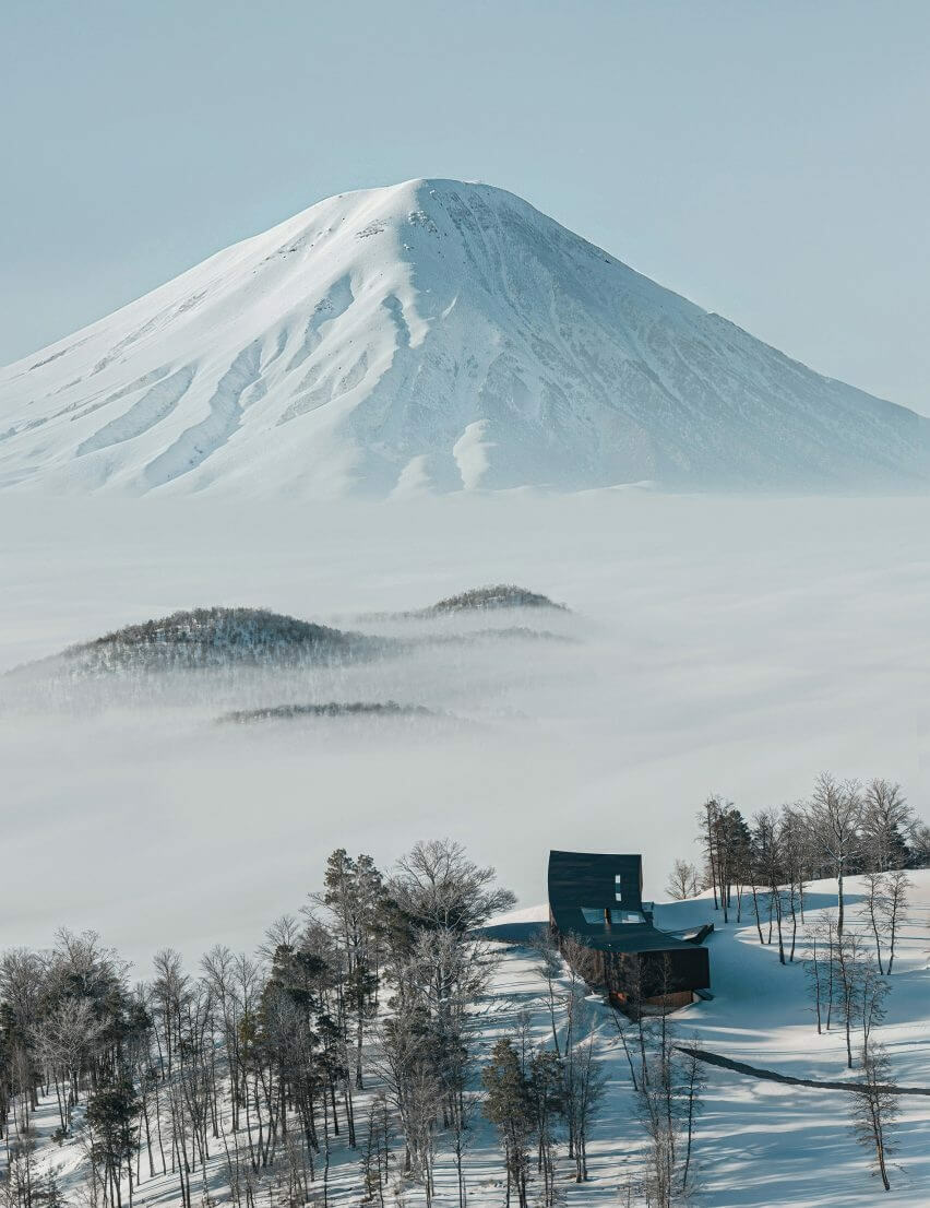 Snøhetta designed the structure with dual volumes to enhance its functionality and architectural coherence. while also harmoniously blending with the natural landscape of Rusutsu. It features a minimal form informed by its surrounding mountainous landscape and the sharp site boundaries.