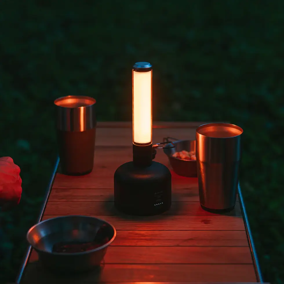 Moreover, Snow Peak’s GigaPower Tabletop Lantern has three light modes to choose from to fit the mood. The Normal Mode offers a steady light with adjustable brightness. Then the Candle Mode gives off a flickering light, mimicking the movement of the flame in a candle. Lastly, the light in the Sleep Mode gradually decreases after 45 minutes before it turns off after an hour. This lantern runs on a rechargeable GigaPower battery that also doubles as a power bank.