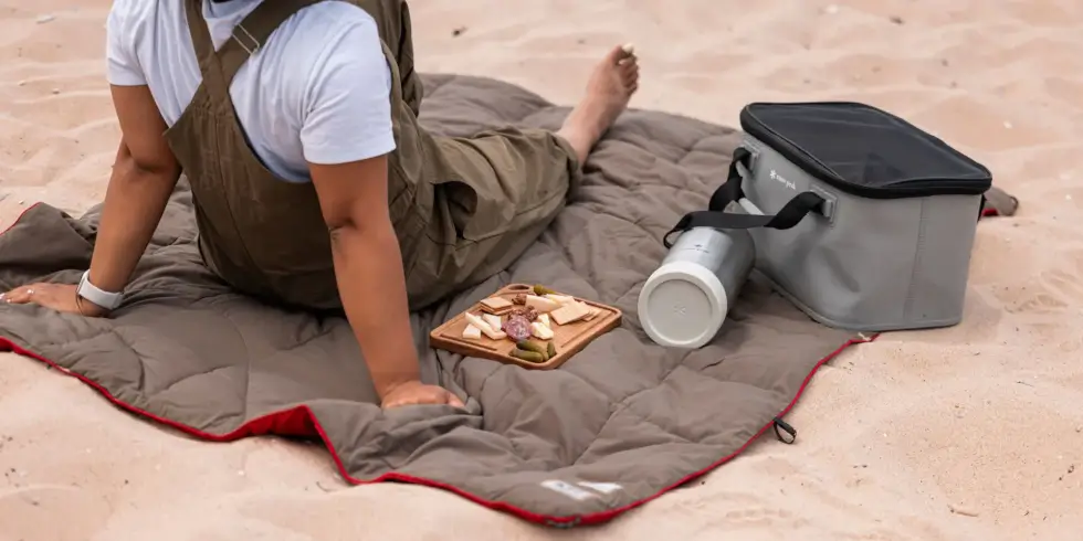 The Snow Peak x Rumpl NanoLoft Takibi Blanket boasts an advanced dual-sided design. The top side can withstand the occasional spark so it’s safe to use while sitting close to the fire. Meanwhile, the other side features Rumpl’s signature 20D ripstop nylon, which is not only cozy and soft. It is also tough enough to handle continued rugged outdoor use.