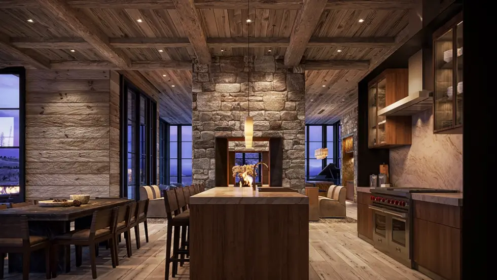 This home not only delivers “a sense of awe and drama” as Alcone told Robb Report. As such, it will rely on hand-cut Montana Moss Rock for the construction and reclaimed timber along the walls and ceilings for warmth. The living quarters boast 16 fireplaces and four bedrooms each with adjoining bathrooms and patios. It even has an 11-bed bunk room equipped with two private bathrooms, two walk-in closets, and a patio.