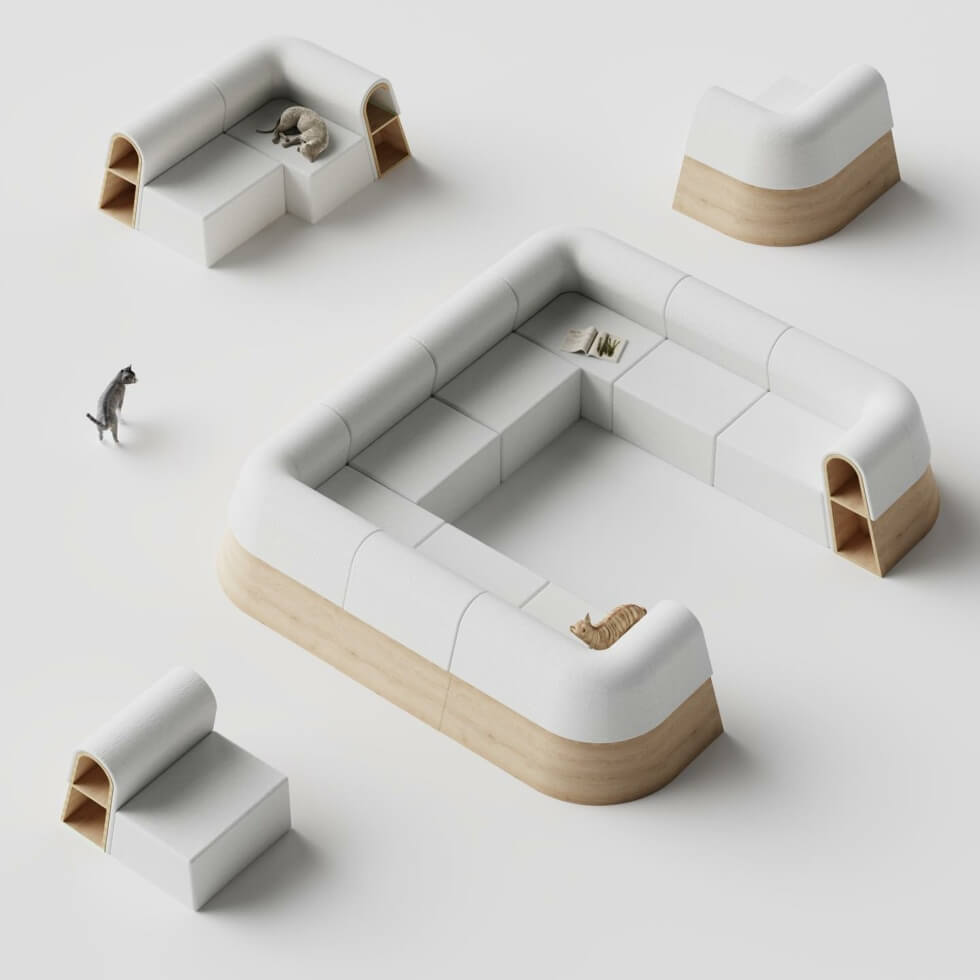 First-time owners of felines will find they are completely different from canines. Dogs are generally perceived as friendlier and more interactive. However, cats, in some cases, can also be very affectionate, playful, and protective pets. SUNRIU Design presents a modular furniture concept meant for the latter and their humans.