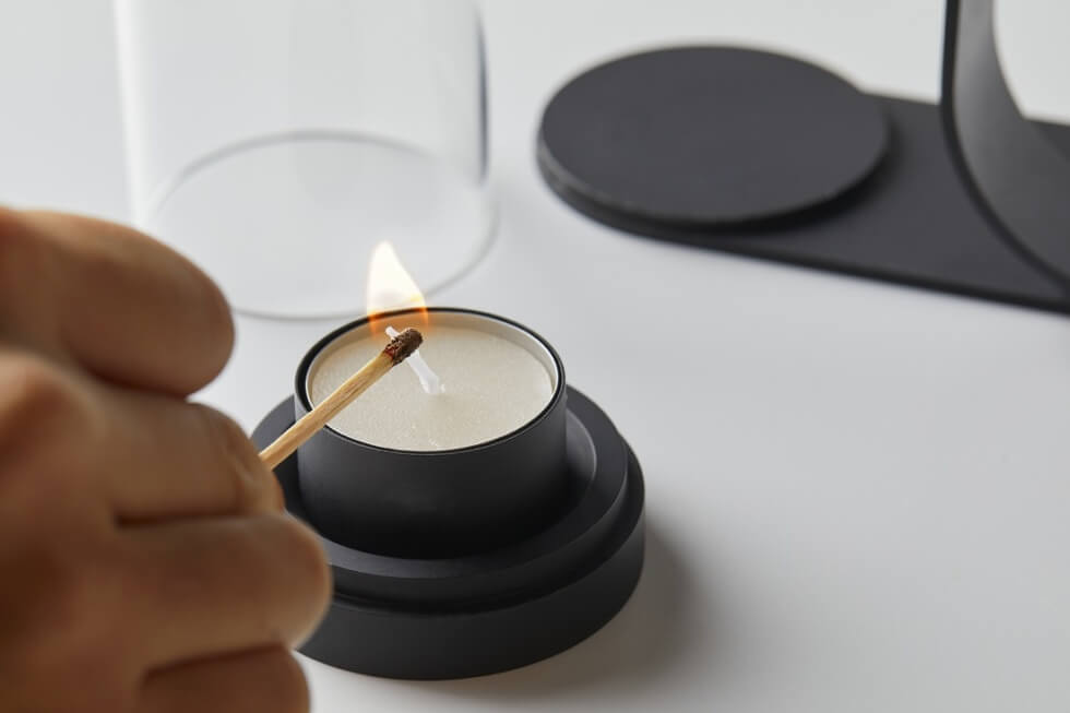 Yu Ito, Yoshimi Kemmotsu, and Bin Sugawara of SOL Style designed the Lei Aroma Diffuser to work without an electricity or battery. Instead, it generates power using heat coming from a candle.