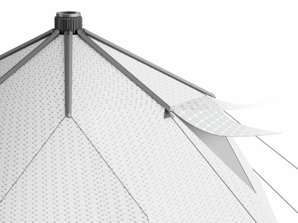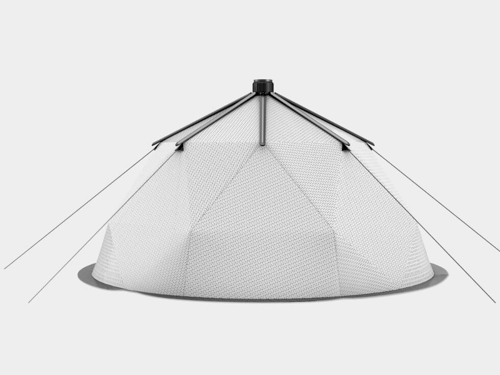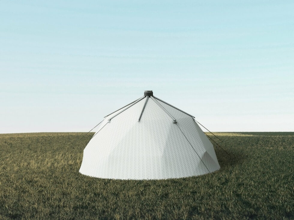 Moreover, the Solar-Powered Camping Tent provides ease of set up and pack up. Renders hint at a plug-and-play system that requires minimal components. It opens wide to fully absorb the sun from above, while providing a generous, cool living space below.