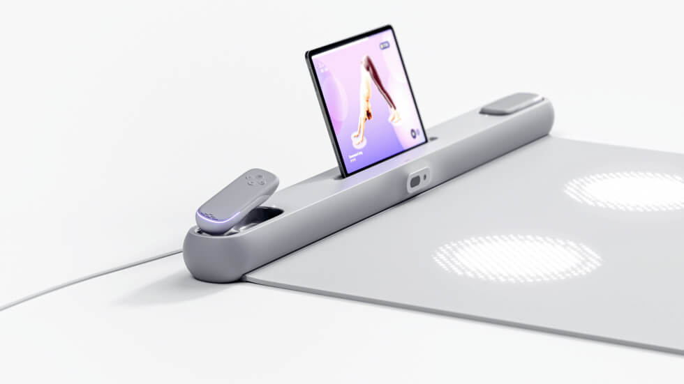 Taking elements from these platforms, the Solelp refines everything into a cohesive system. Renders of the concept show the users perform yoga. A virtual instructor visually guides you via your mobile device on how to execute the poses. Furthermore, embedded LEDs on the touch-sensitive mat indicate where your hands or feet should be.