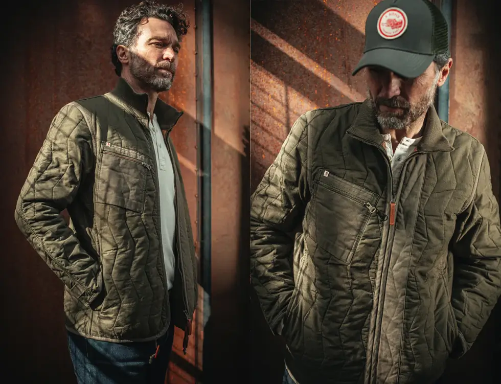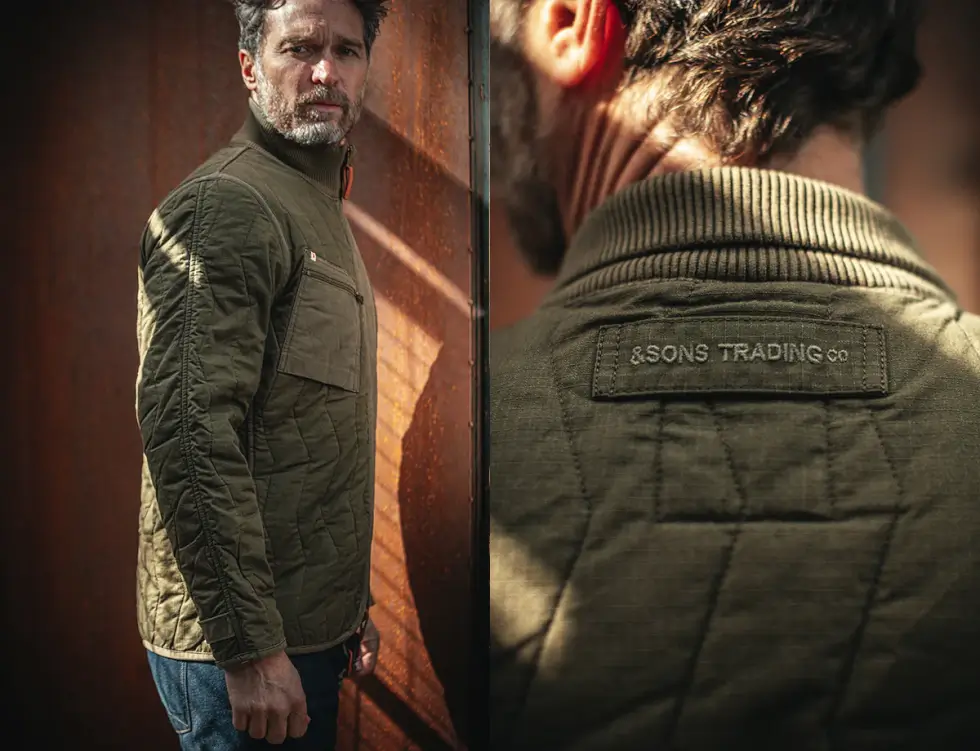 &Sons’ Flak Quilted Jacket even has a rugged yet sleek silhouette. Its faded army green outer shell complements the inner tan color. The 2×2 ribbed collar adds a sporty touch while keeping the cold breeze away from your neck. The tracksuit collar perfectly translates to today’s modern urban street style. Meanwhile, adjustable cuffs fastened with a 2-way zipper let you dial the desired fit or roll up the sleeve for a laidback look.