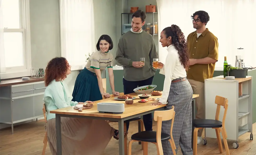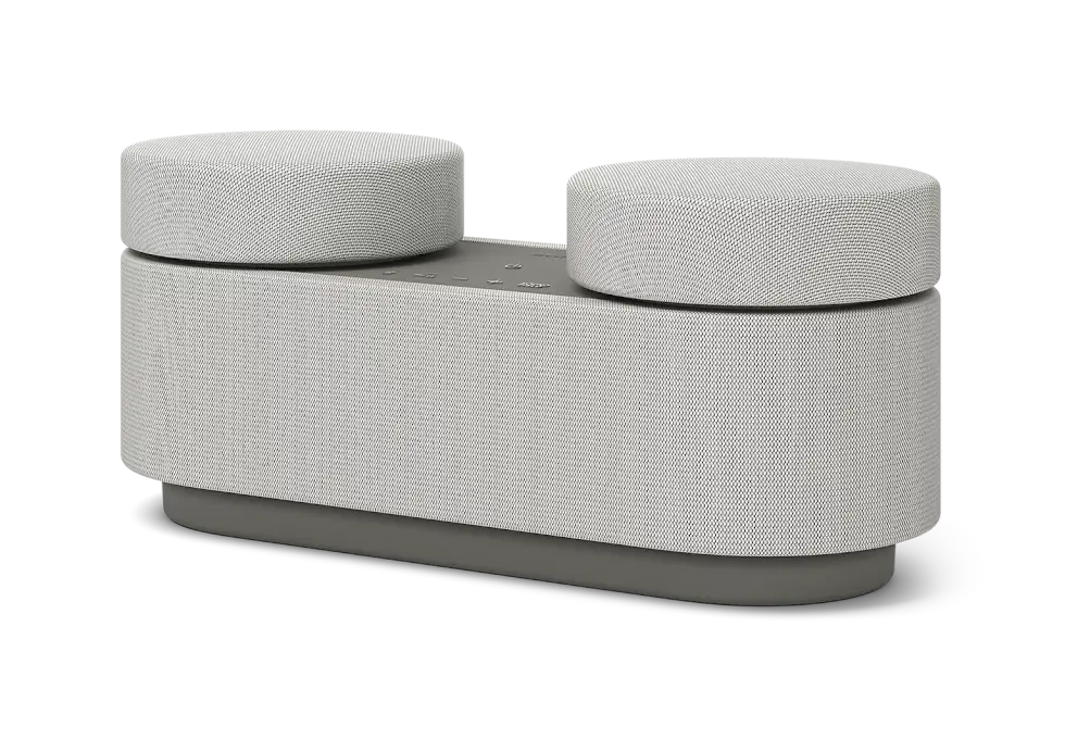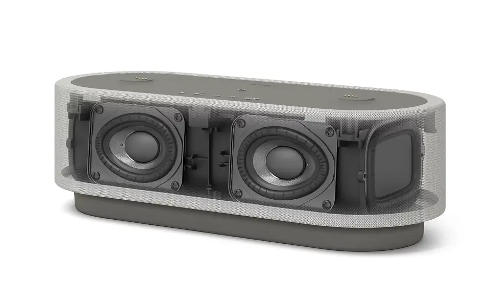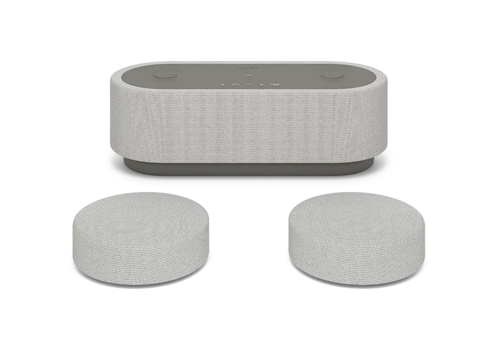 At first glance, you would think that it’s just another odd-looking smart speaker. You have a modern rounded body wrapped in acoustic fabric with touch controls positioned at the top flanked by two puck-like elements. However, there’s more to it as these two are detachable and remain wirelessly connected to the central base unit.