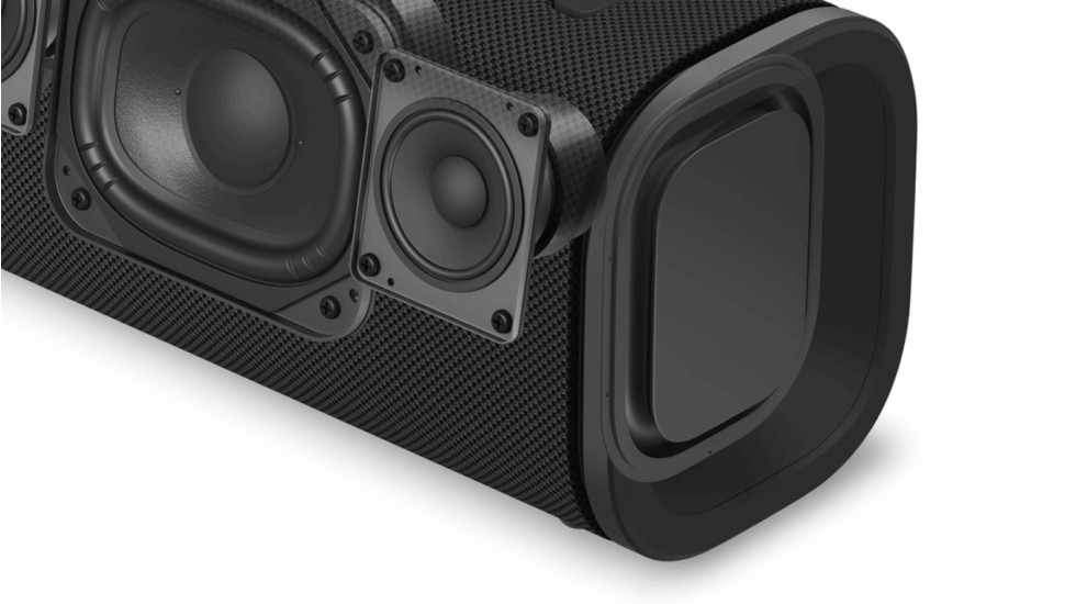 Rubber feet on the base and the shape of its frame allow users to position it horizontally or vertically. Controls are located at the top and are easy to understand and operate. Your ULT FIELD 5 holds two L/R tweeters and a woofer for rich and powerful sound output.